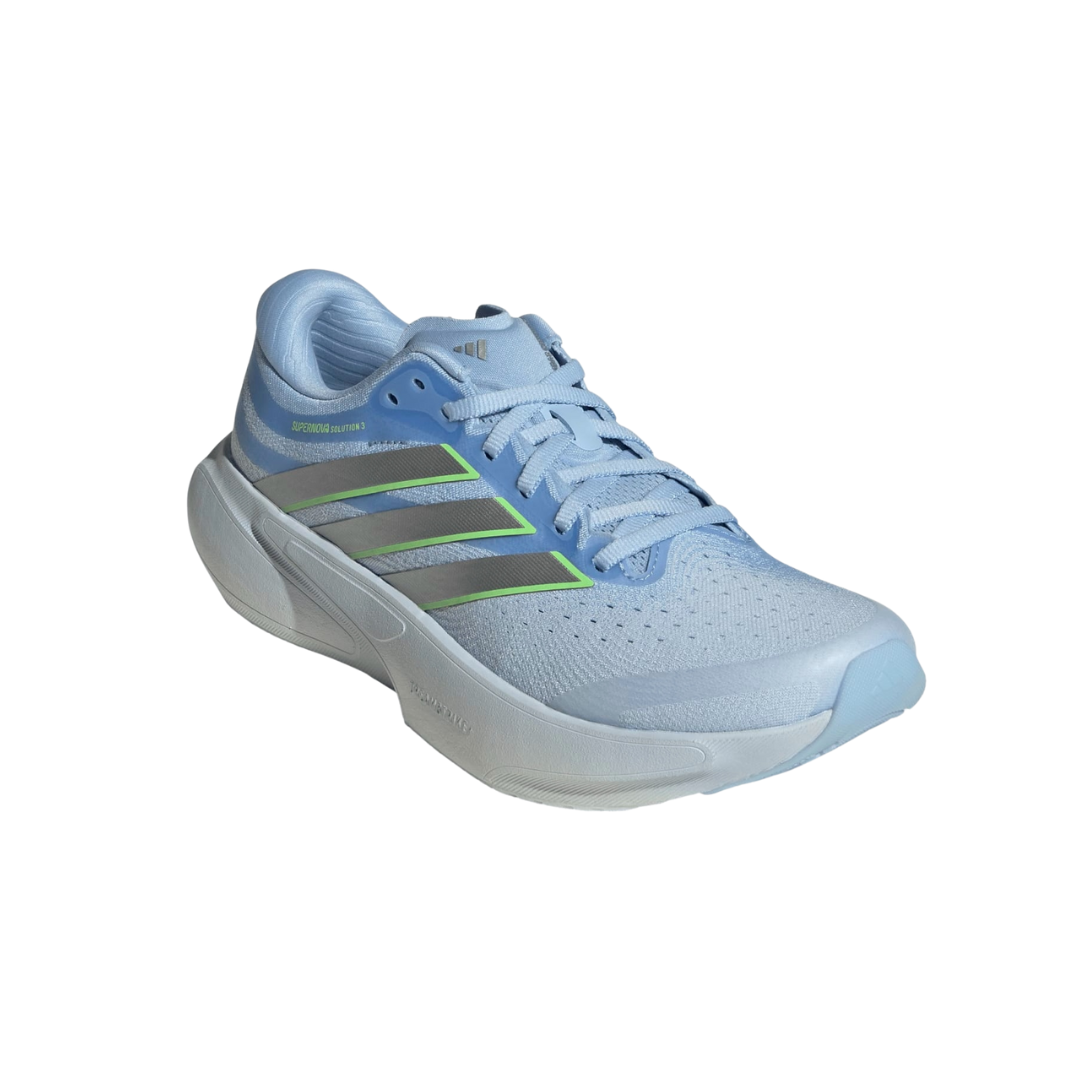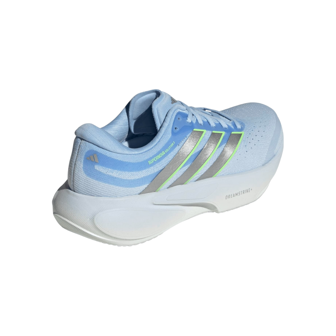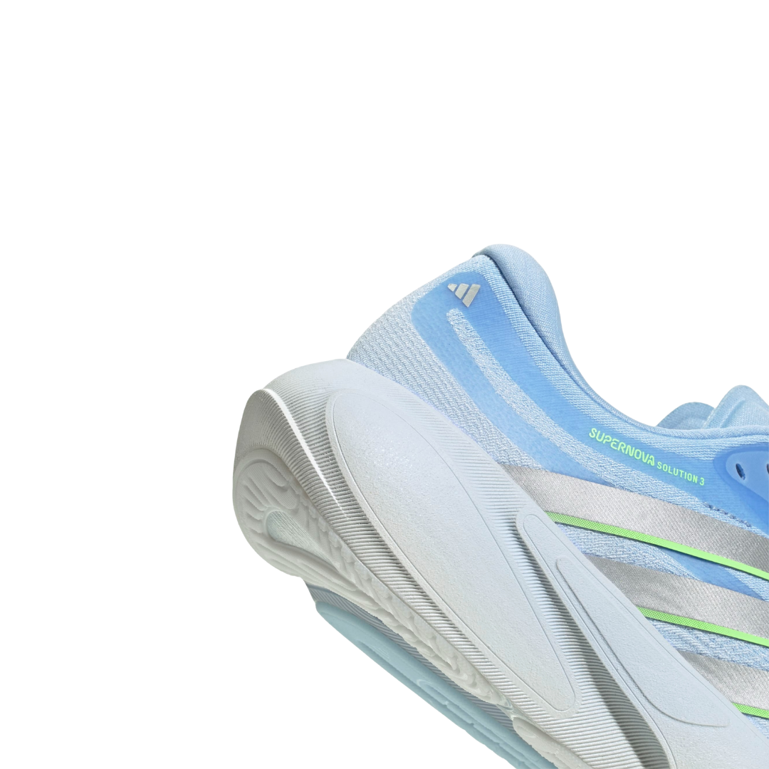 La tomaia in mesh tecnico assicura traspirabilità e comfort, mentre la struttura complessiva della scarpa è studiata per offrire una calzata stabile e sicura. Le Supernova Solution sono ideali per runner che cercano una scarpa affidabile per l’uso quotidiano, con un livello di supporto superiore rispetto a una neutra tradizionale.