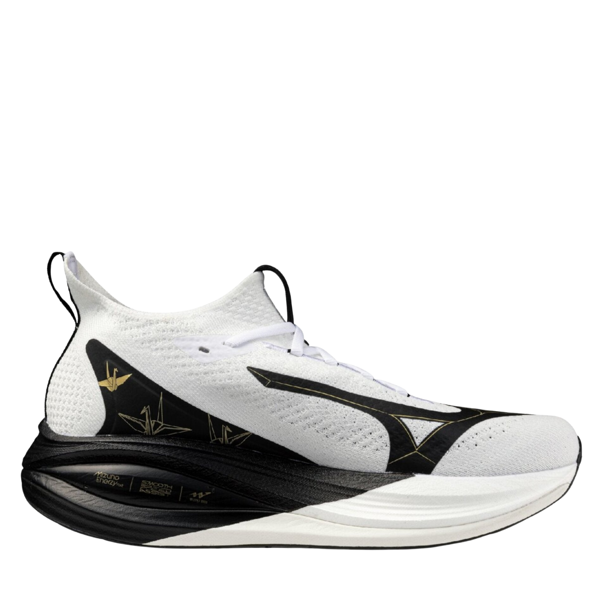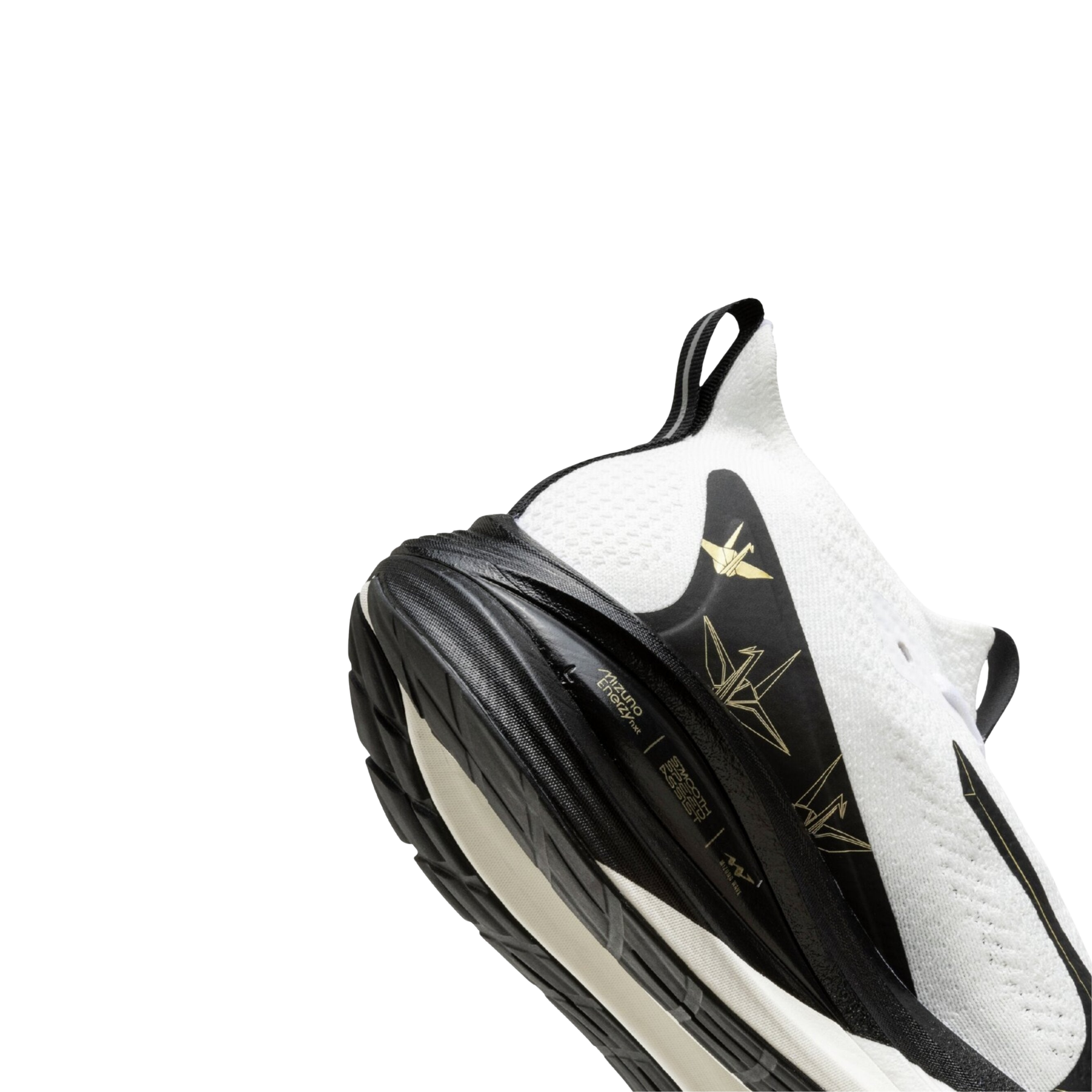 L’intersuola utilizza la tecnologia Mizuno ENERZY, capace di garantire un’ammortizzazione confortevole con un ritorno di energia elevato, assicurando una sensazione di corsa più morbida e responsiva. La costruzione della suola favorisce transizioni scorrevoli dal tallone alla punta, migliorando l’efficienza della rullata.