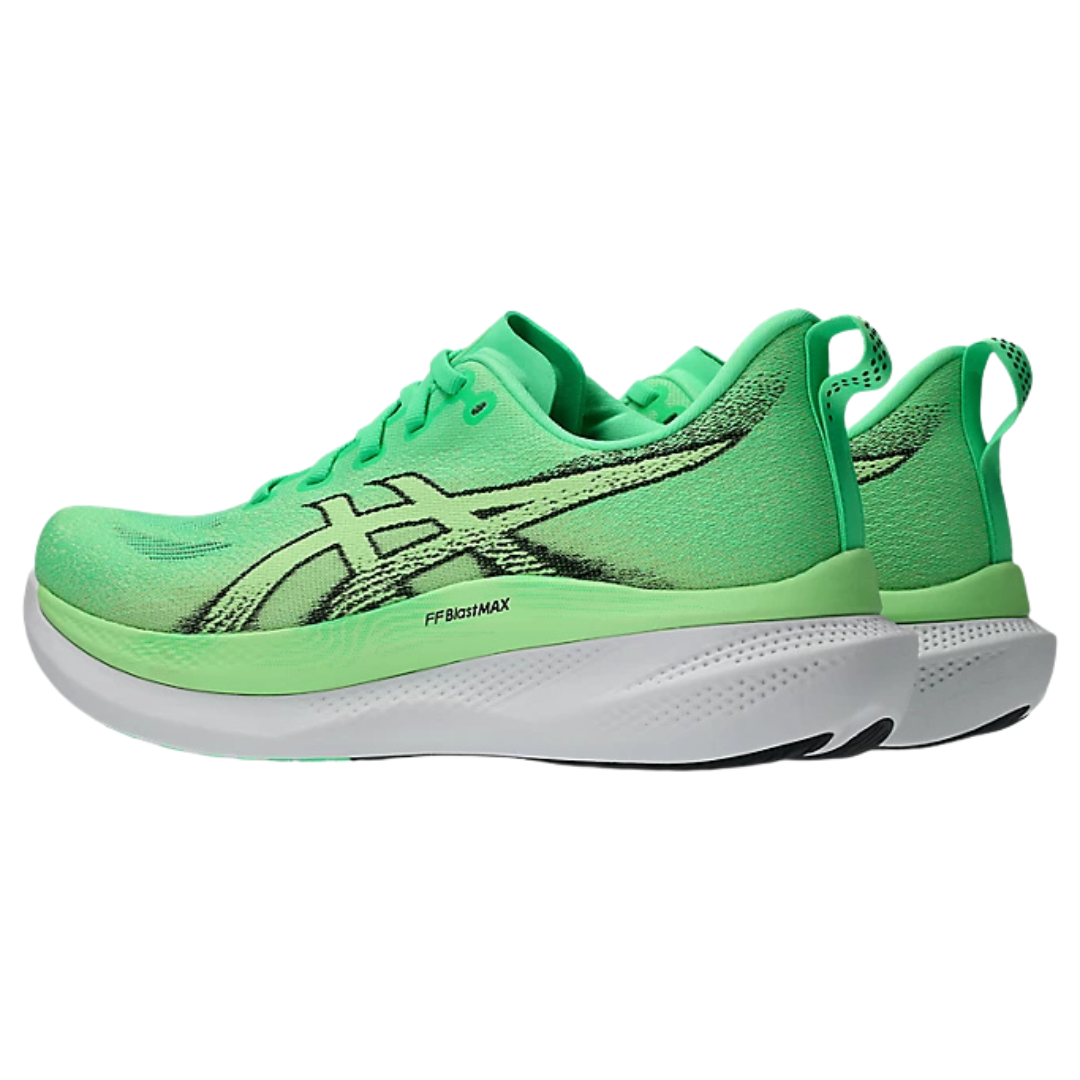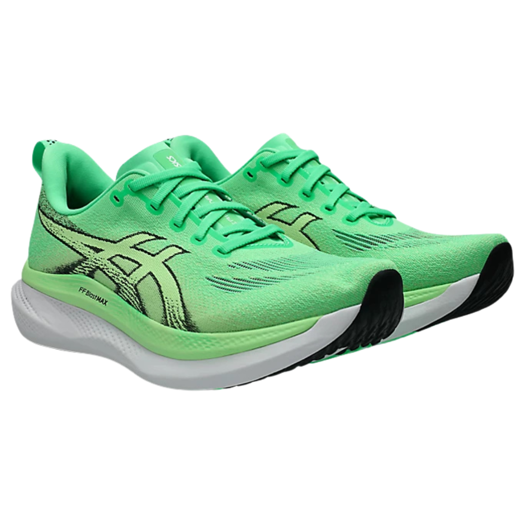 Il cuore della scarpa è la tecnologia GUIDESOLE®, caratterizzata da una geometria rocker pronunciata che riduce la flessione della caviglia e aiuta a diminuire l’affaticamento muscolare durante la corsa . L’intersuola combina FF BLAST™ PLUS e FF BLAST™ MAX, offrendo un perfetto equilibrio tra morbidezza, stabilità e ritorno di energia, garantendo una falcata reattiva ma protetta .