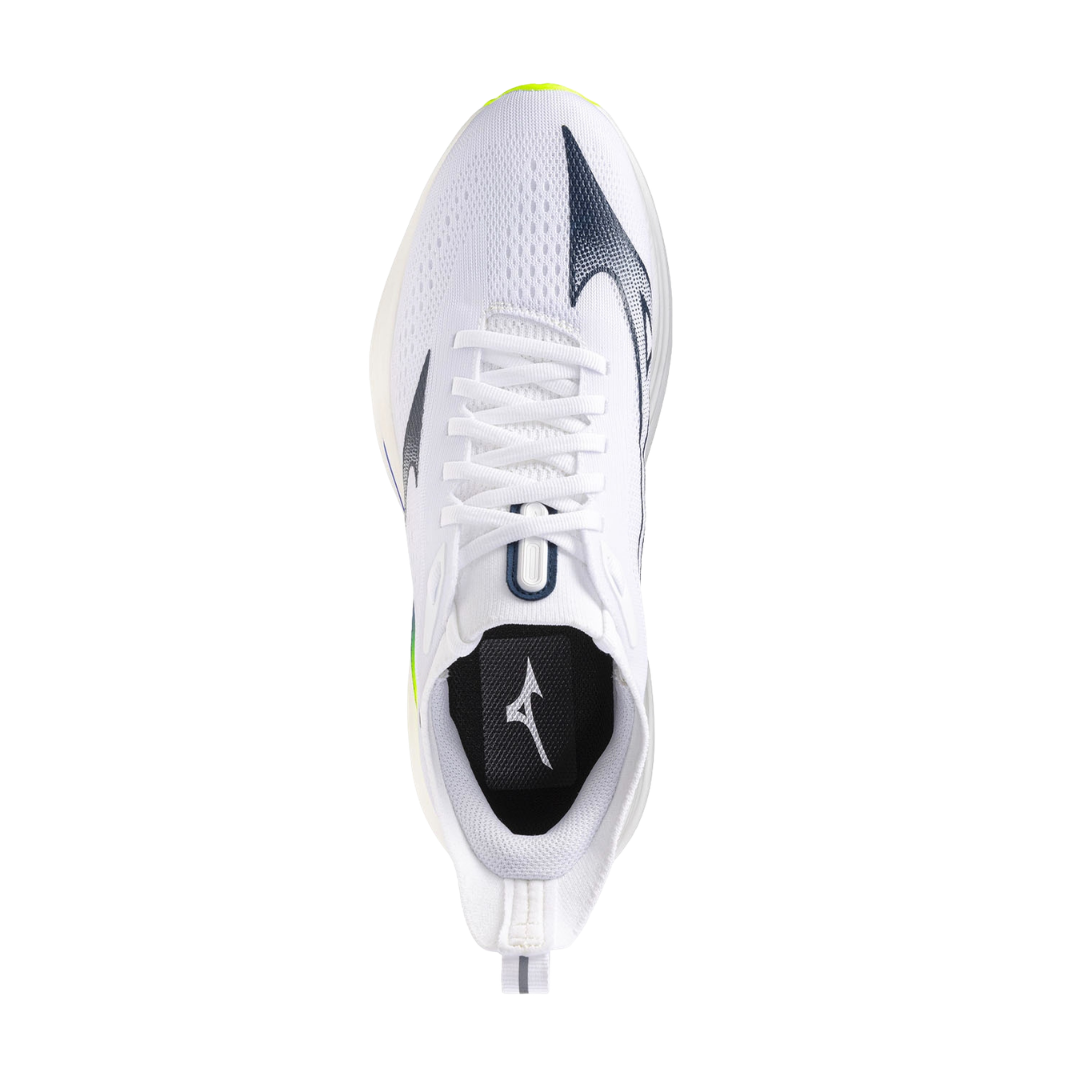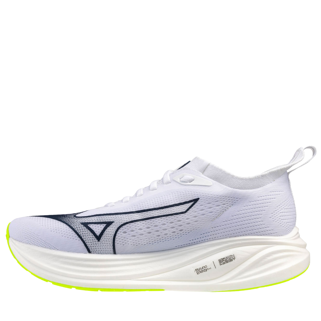 La schiuma MIZUNO ENERZY nell’intersuola garantisce un’eccellente ammortizzazione con alto ritorno di energia, permettendo transizioni morbide e sensazione di corsa più scattante. La tomaia in mesh knit elasticizzato avvolge il piede offrendo supporto leggero, traspirabilità e comfort, adattandosi al movimento naturale del piede.